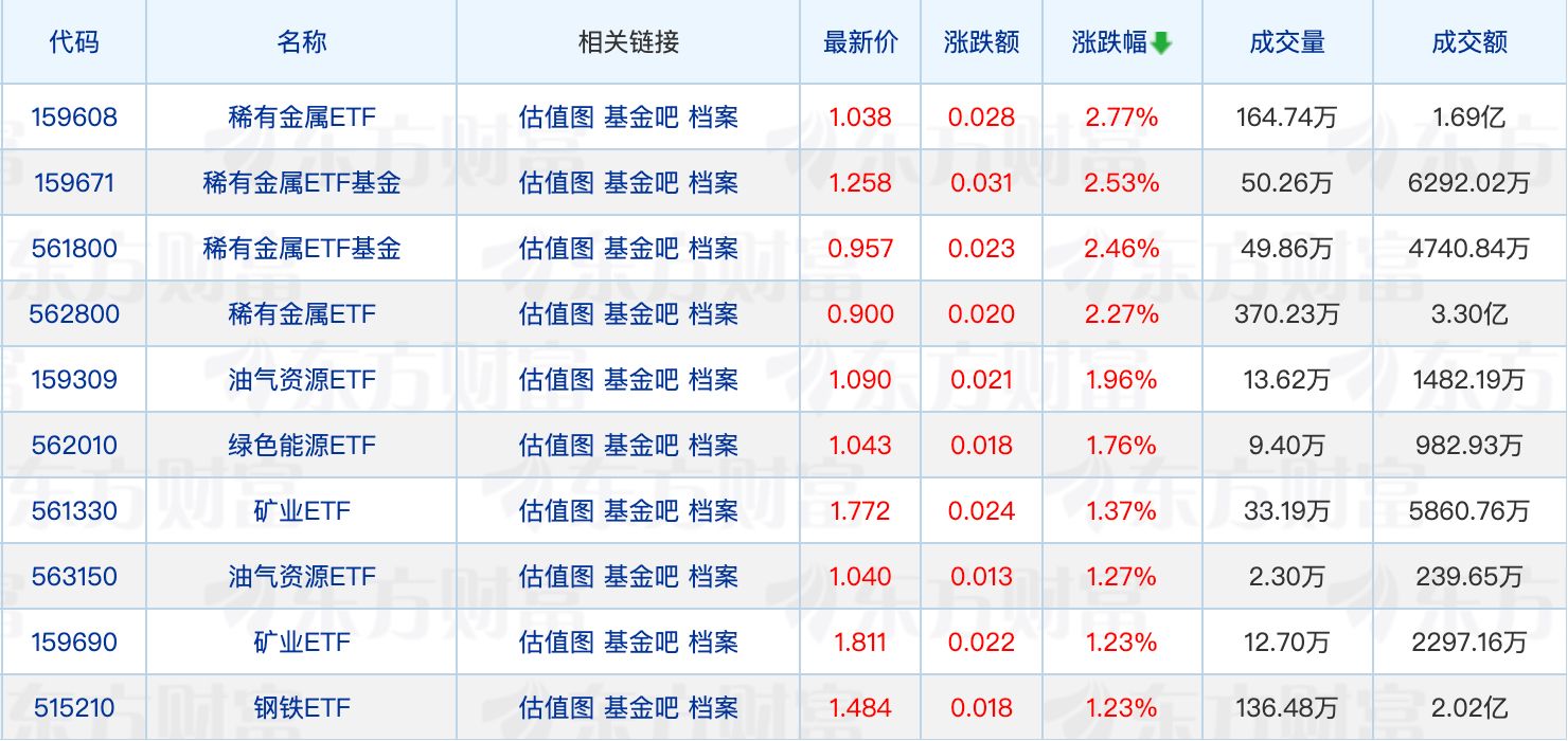 具體來看,稀有金屬相關ETF集體走強,最高漲2.77%。