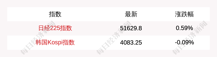 每經AI快訊:北京時間10月31日08:00,日經225指數開盤上漲304.19點,漲幅為0.59%,報51629.8點;韓國KOSPI指數開盤下跌3.64點,跌幅為0.09%,報4083.25點。