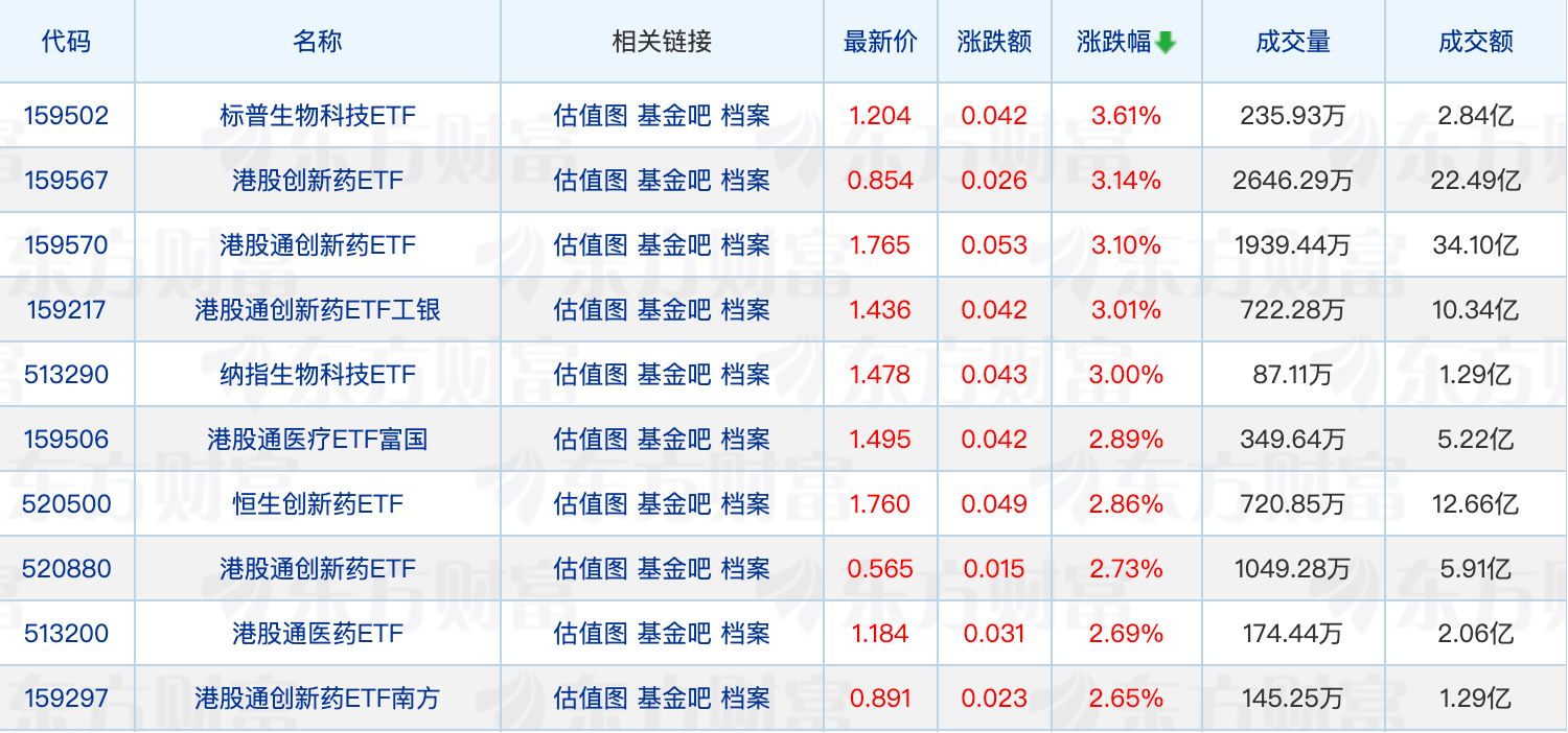 具體來看,港股創新藥相關ETF集體走強,最高漲3.14%。