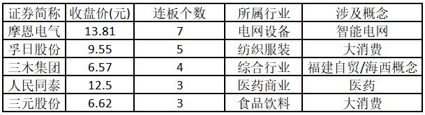 (注:連板個數越多的個股,說明該股被資金重點追捧,可能預示相關概念或行業機會。)