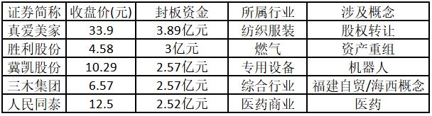 從封板資金來看,今日漲停板個股中,封板資金排名前5的個股包括真愛美家、勝利股份、冀凱股份、三木集團、人民同泰。歡迎大家關注微信公眾號“道達號”,其“道達漲停復盤”欄目為大家解讀。