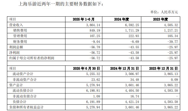 然而,上海樂游2024年凈利潤為-43.58萬元,2025年上半年則為-56.72萬元。這意味著標(biāo)的公司必須在極短時(shí)間內(nèi)實(shí)現(xiàn)從虧損到持續(xù)盈利的逆轉(zhuǎn)。