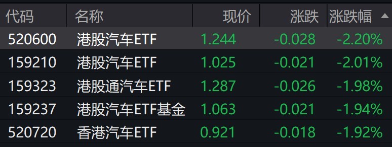 受盤面影響,港股汽車相關(guān)ETF跌約2%。