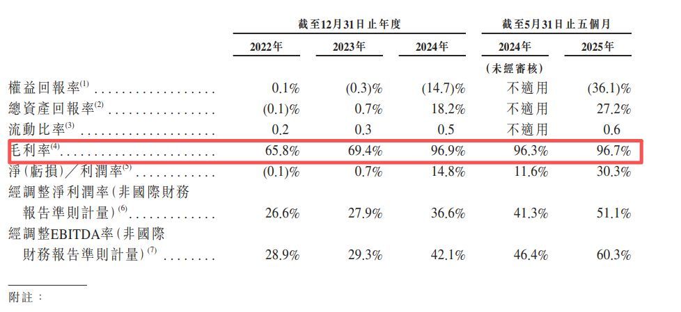 同樣飆升的還有其毛利率。2023年量化派毛利率為69.4%,2024年升至96.9%,并在2025年前五個月維持在96.7%的高位。