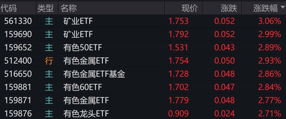 有色金屬概念股走強,礦業、有色相關ETF漲約3%