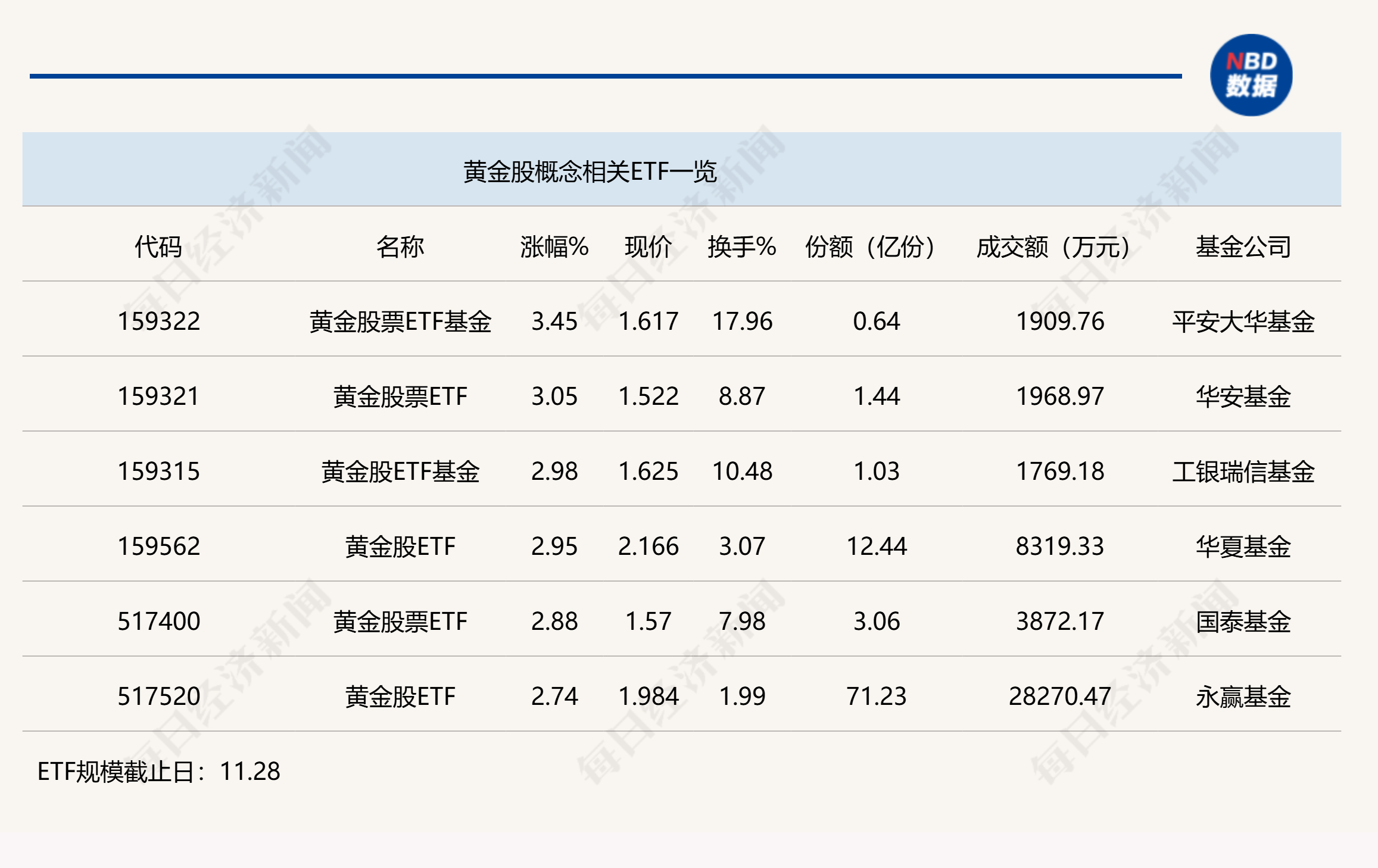 行業(yè)ETF風(fēng)向標(biāo)丨有色金屬ETF交投略有放量,兩只黃金股ETF半日漲幅超3%