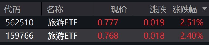 受盤面影響,跟蹤中證旅游主題指數的旅游ETF漲超2%。