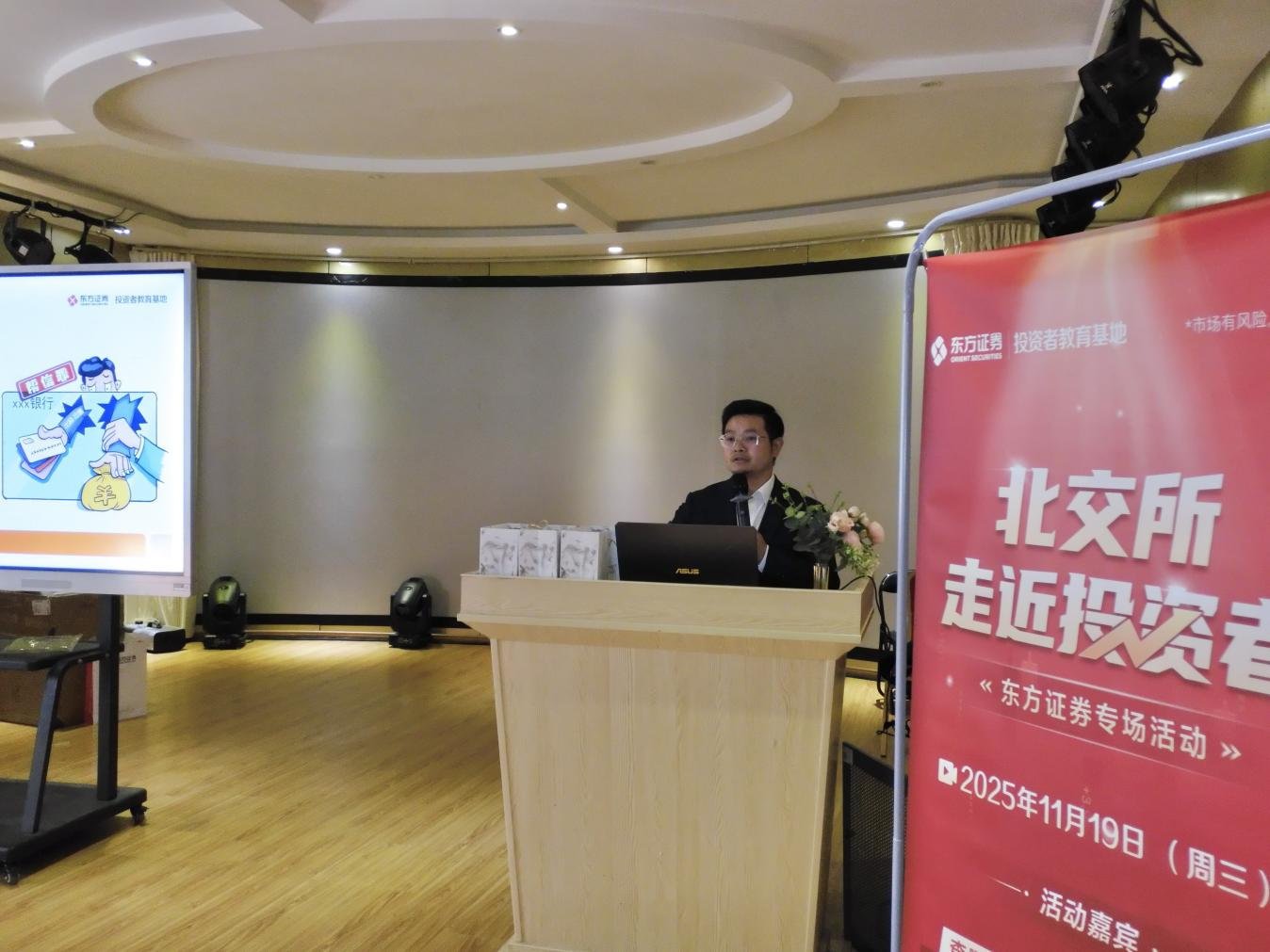 2025年11月19日下午,東方證券聯(lián)合北京證券交易所走進(jìn)江西現(xiàn)代職業(yè)技術(shù)學(xué)院,開展“北交所走進(jìn)投資者”主題投教活動(dòng),共110名師生參與學(xué)習(xí)交流。