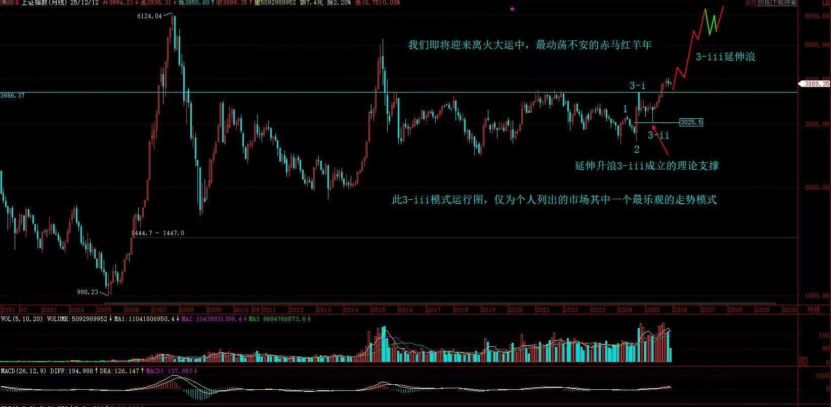 2025年A股在政策、估值、盈利、資金四重支撐下走出了牛市行情,但A股市場細分賽道的分化卻愈發明顯。2026年作為“十五五”規劃開局之年,經濟轉型深化與政策發力預期疊加,在這樣的背景下,2026年的投資機會如何?從技術分析的角度來看,2026年的A股市場在私募大佬眼中又會有怎樣的表現?近日,市場資深分析人士劉寧川從技術分析的角度對2026年的市場作出了他個人的推演。