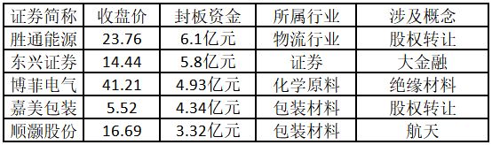 從封板資金來看,今日漲停板個股中,封板資金排名前5的個股包括勝通能源、東興證券、博菲電氣、嘉美包裝、順灝股份。歡迎大家關注微信公眾號“道達號”,其“道達漲停復盤”欄目為大家解讀。