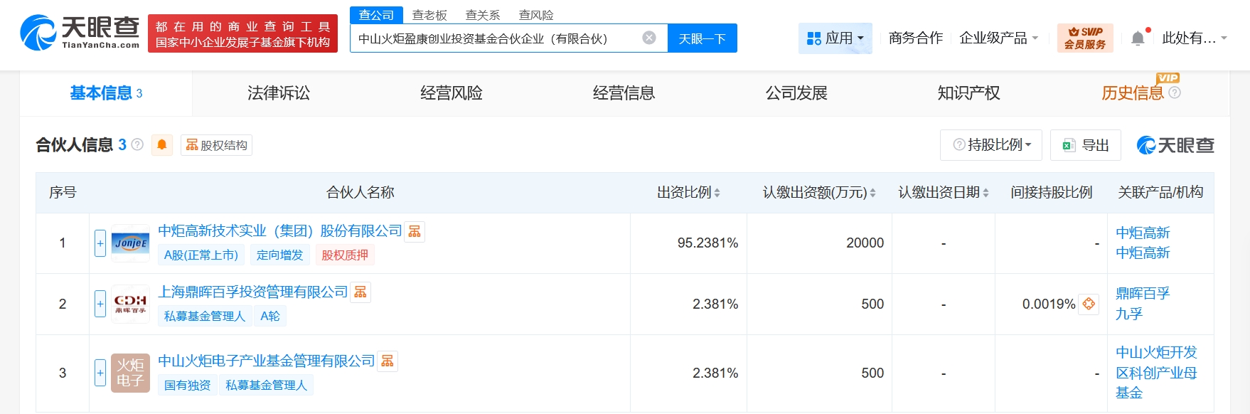 每經AI快訊,天眼查App顯示,近日,中山火炬盈康創業投資基金合伙企業(有限合伙)成立,執行事務合伙人為中山火炬電子產業基金管理有限公司,出資額2.1億元人民幣,經營范圍含私募股權投資基金管理、創業投資基金管理服務,以私募基金從事股權投資、投資管理、資產管理等活動,企業管理咨詢。合伙人信息顯示,該基金由中炬高新(600872)、上海鼎暉百孚投資管理有限公司、中山火炬電子產業基金管理有限公司共同出資。
